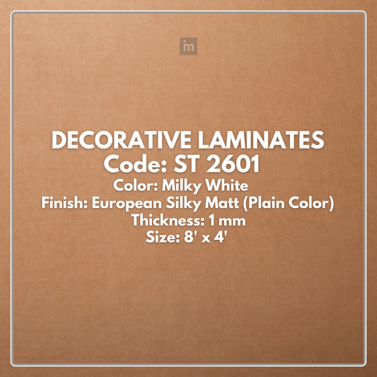 ST 2601 MILKY WHITE / EUROPEAN SILKY MATT / PLAIN COLOR / DECORATIVE LAMINATE / THINK LUXURY - 1MM - 8FT x 4FT