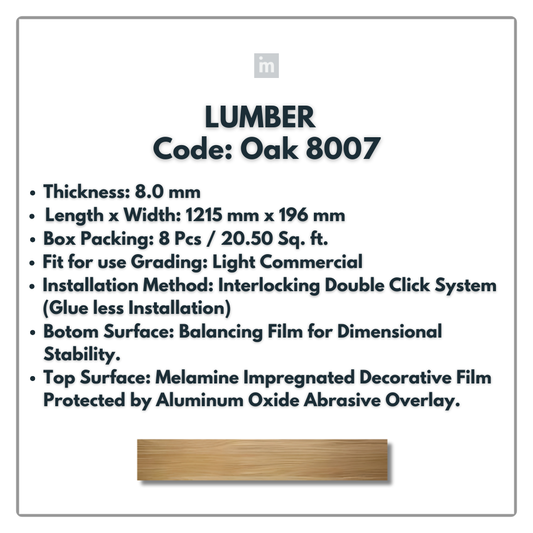 8007 - OAK- LUMBER - 1215MM X 196MM X 8.0MM - WOODEN FLOORING - SOLUTIA - FLOORING