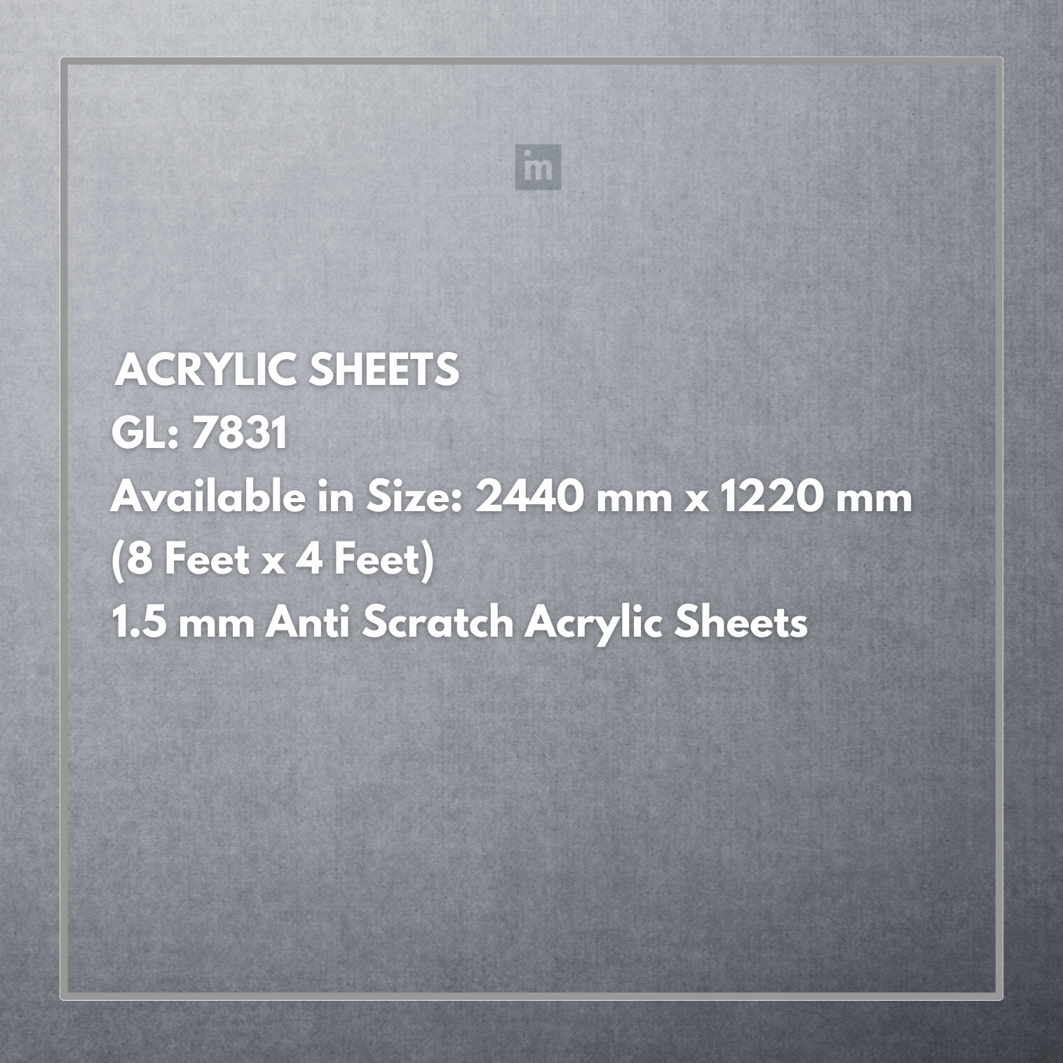 GL - 7831 - 2440MM X 1220MM (8FT X 4FT) - 1.5MM ANTI SCRATCH ACRYLIC SHEET - CRYSTA
